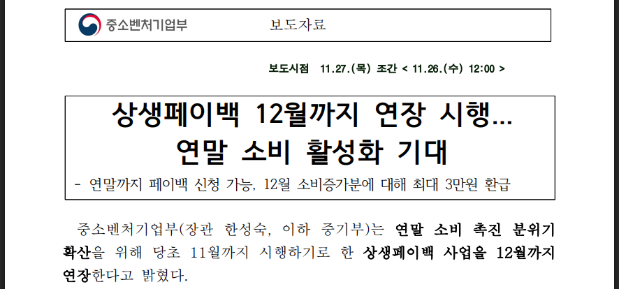 μ€μλ²€μ²κΈ°μ λΆλ 11μ 26μΌ μμνμ΄λ°± μ¬μ μ 12μ 31μΌκΉμ§ 1κ°μ μ°μ₯νλ€κ³ λ°ννμ΅λλ€.
